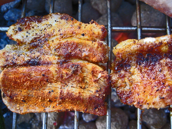 Grillen, bis auf beiden Seiten eine gute Bräunung ist. (Siehe Startbild rechts)