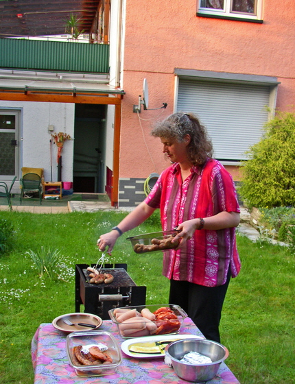 Wir grillen hier mit unserem alten Eisen-Grill auf der Terrasse: