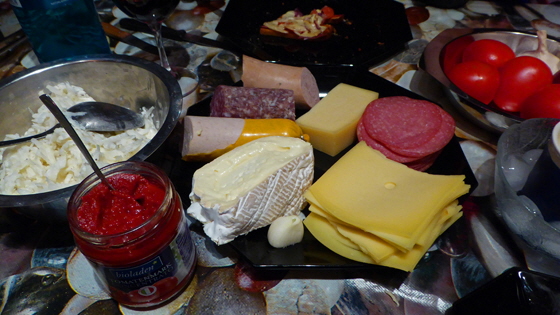 Hier noch die unvermeidliche Käsmatte. Es handelt sich ja bei den ‘Pizzbroten’ eigentlich um ein spezielles Abendbrot, diesmal jedoch ohne Handkäs mit Musik und stattdessen eben jene Pizzabrote aus dem Ofen..