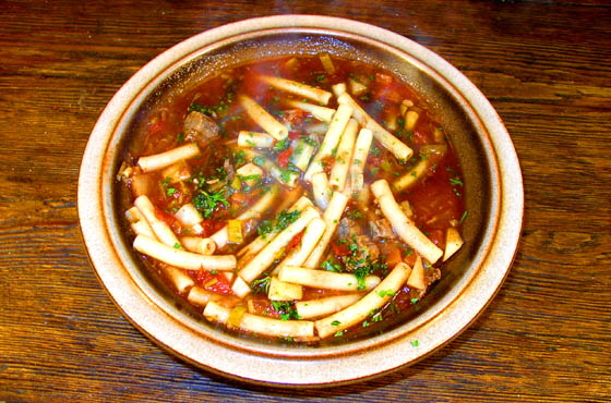 ...gemeint ist eine deftige Rindfleischsuppe mit Nudeln